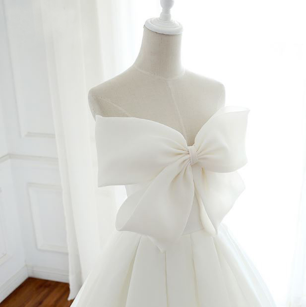 Elegant Strapless Soft Satin Maternity Wedding Dresses A-Line Empire Waist Simple Wedding Dresses with Big Bow Floor Length Bridal Gowns