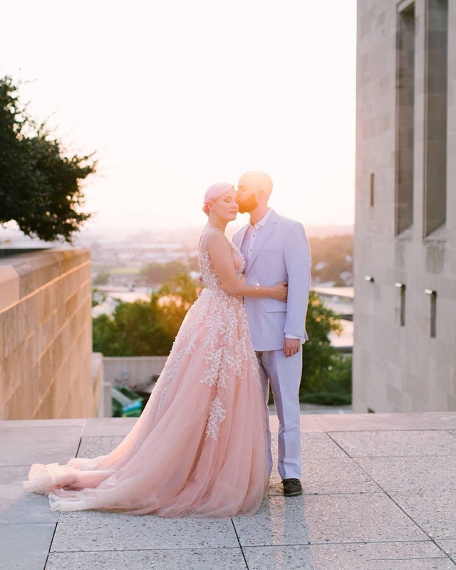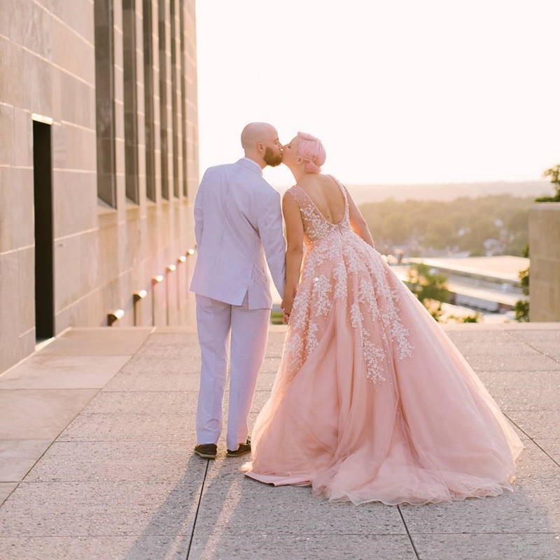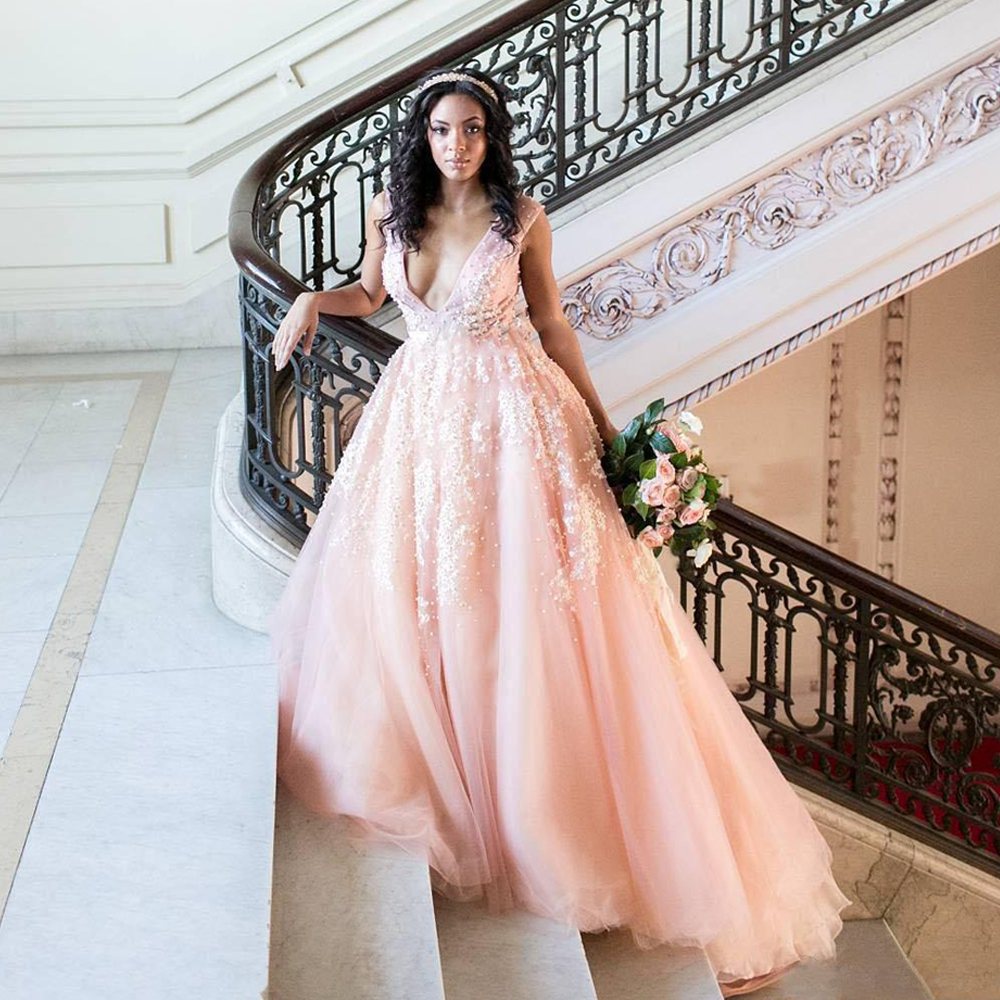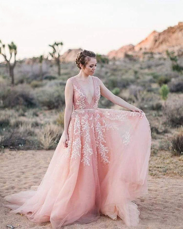 Tulle Blush Wedding Dress Ball Gown Deep V-Neck Lace Appliques vestido de novia Pearls Beaded Bridal Dresses Custom Made