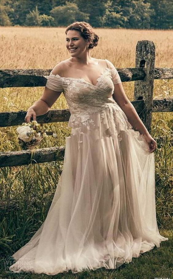 Champagne Wedding Dresses A-Line with White Lace Appliques