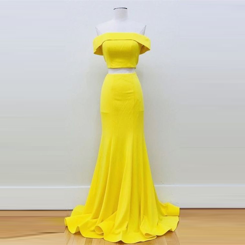 Two Pieces Yellow Prom Dresses, Homecoming Dresses, Long Party Dresses