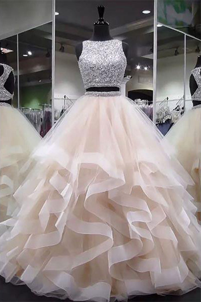 Two Pieces Prom Dresses, Wedding Reception Dresses, Beaded Prom Dresses, Party Dress, Dresses Gala, Evening Dresses, Party Dresses for Weddings