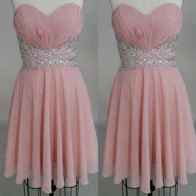 Wedding Party Dresses, Wedding Guest Dress, Pink Beading Homecoming Dress,Strapless Short Homecoming Dresses