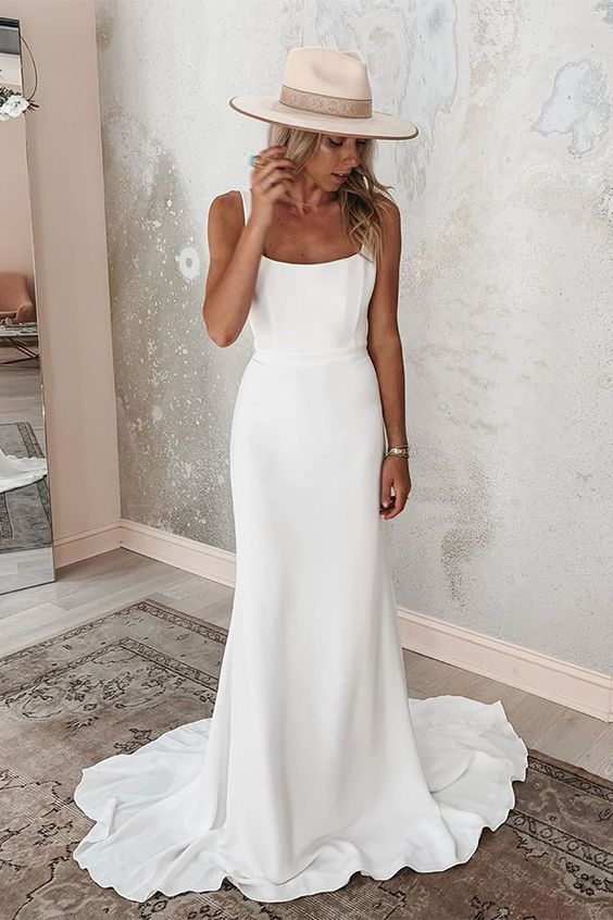 White Long Beach Wedding Party Dresses, Formal Dresses