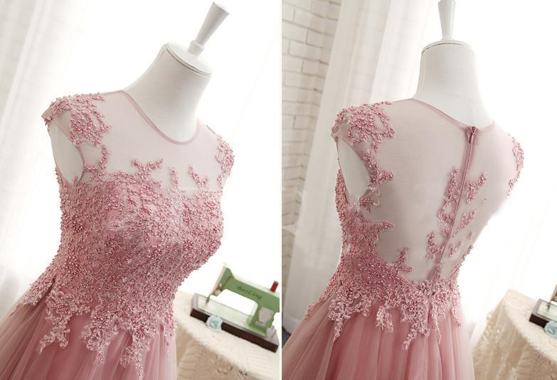 Pink Prom Dresses, Long Formal Dresses with Lace Beading