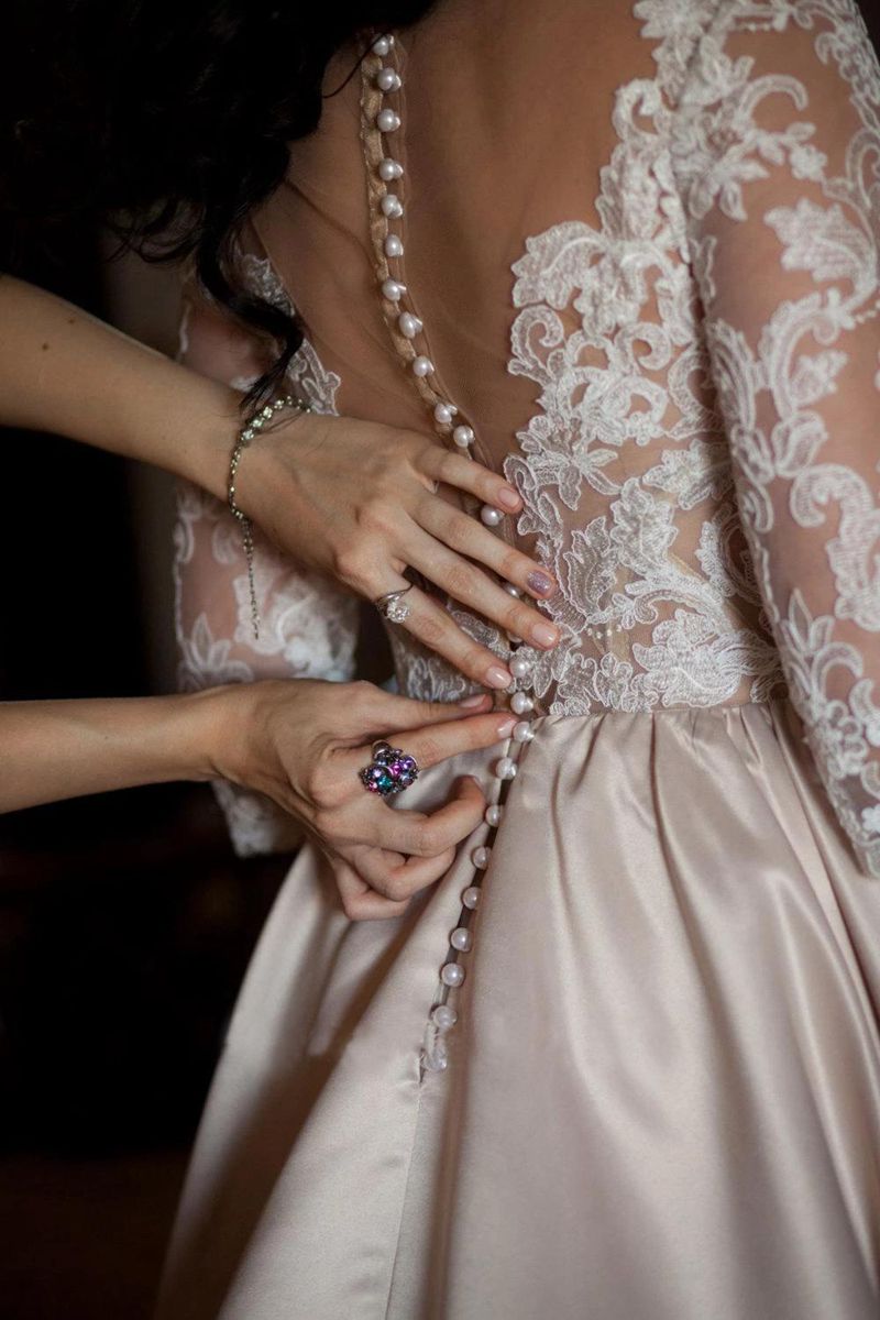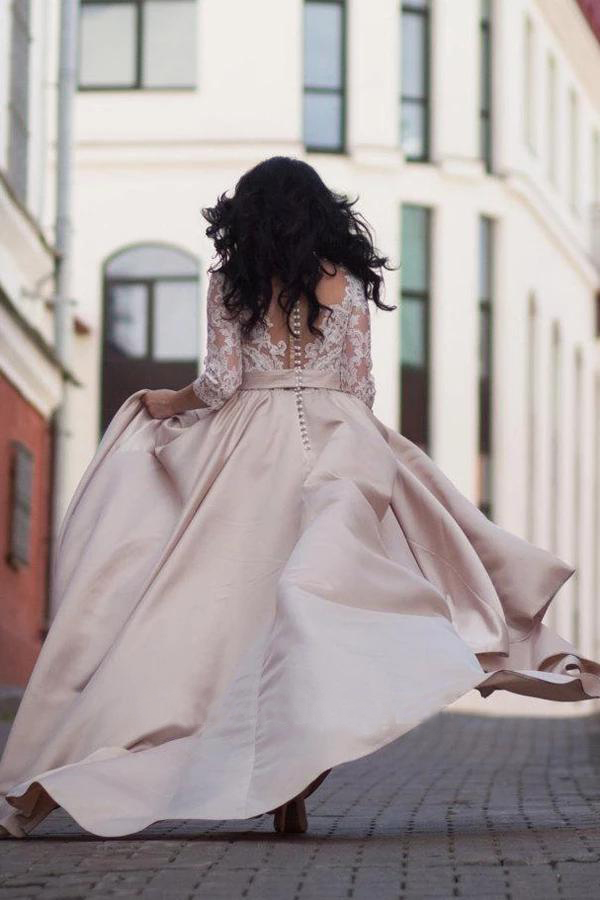Romantic Wedding Dresses A-Line with Sweep Train Long Sleeve Wedding Dresses Bodice Lace Appliques Sheer Back Blush Wedding Gowns