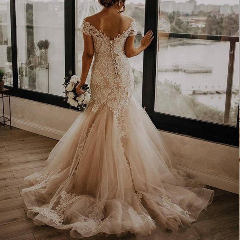 Off Shoulder Mermaid Wedding Dresses 2021 Lace Appliques Lace Up Back Plus Size Bridal Gowns Bride Dress vestido de noiva