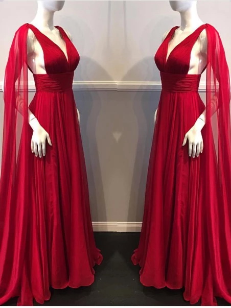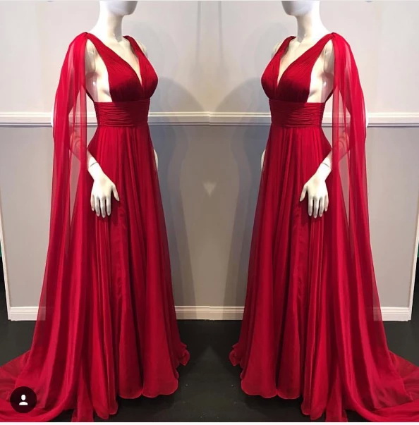 Sexy Deep V-Neck A-Line Burgundy Chiffon Fitted Prom Dresses on Sale with Watteau Train Sweep Train Formal Evening Gowns vestido de festa