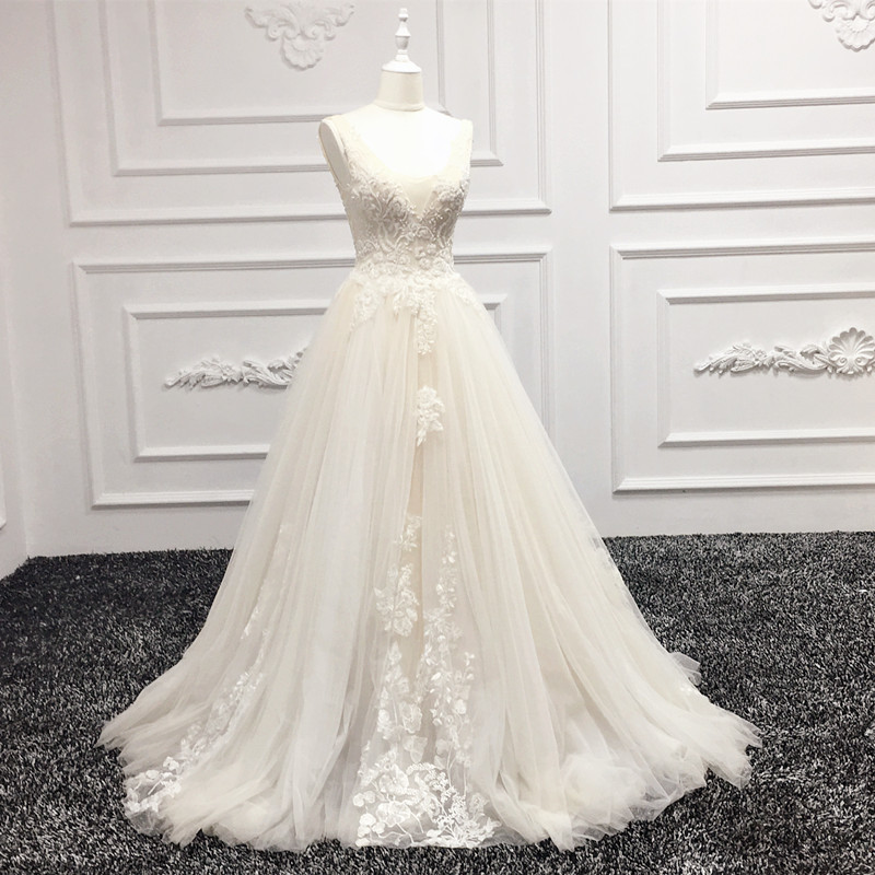 Exquisite Deep V-Neck A-Line Wedding Dresses Sweep Train Lace Appliques Beautiful Wedding Dresses Crystals Beading abiti da sposa