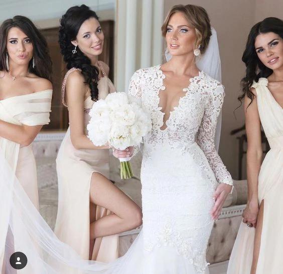 Stunning Deep V-Neck White Trumpet Wedding Dresses with Sleeves Sexy Backless Lace Mermaid Wedding Dress Robe Mariee Wedding Gowns