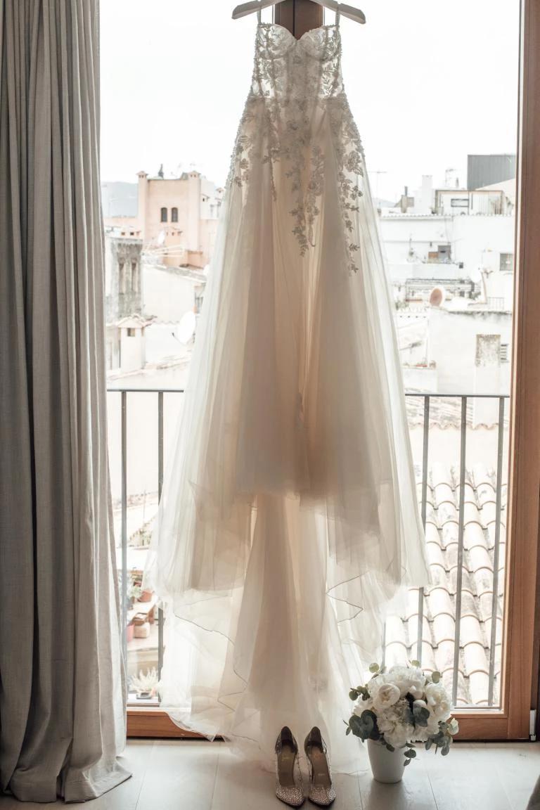 White or Ivory Tulle Beautiful Wedding Dresses with Sweep Train A-Line Lace Appliques See Through Long Bridal Gown abiti da sposa