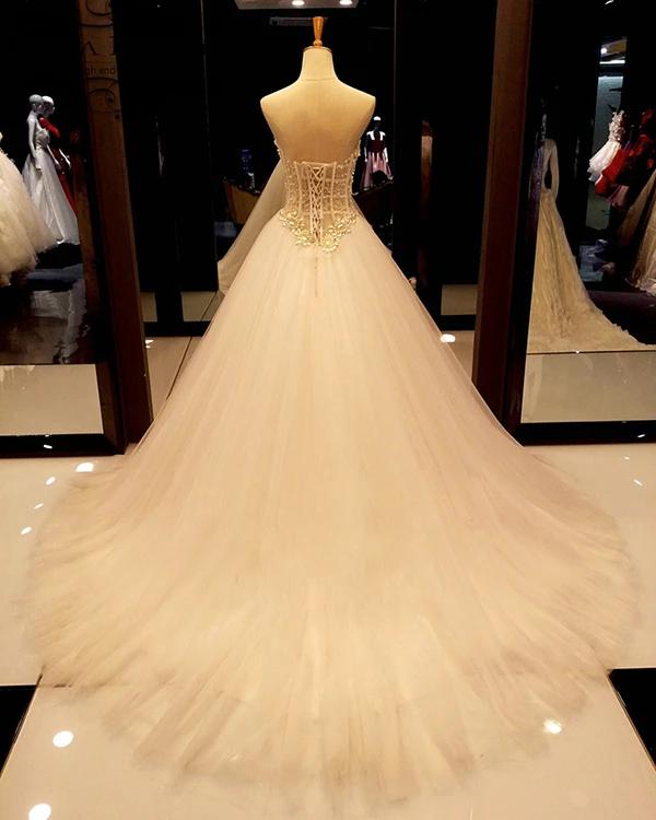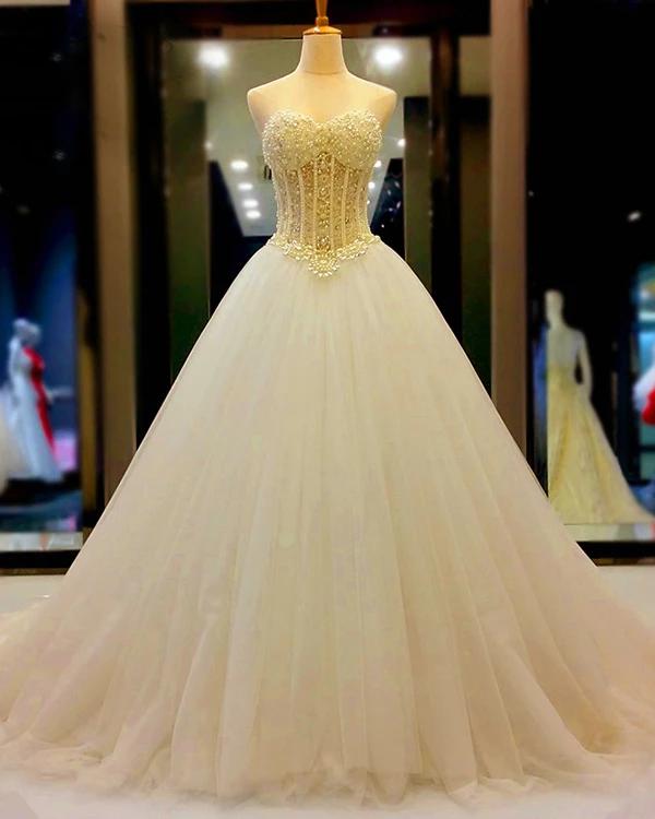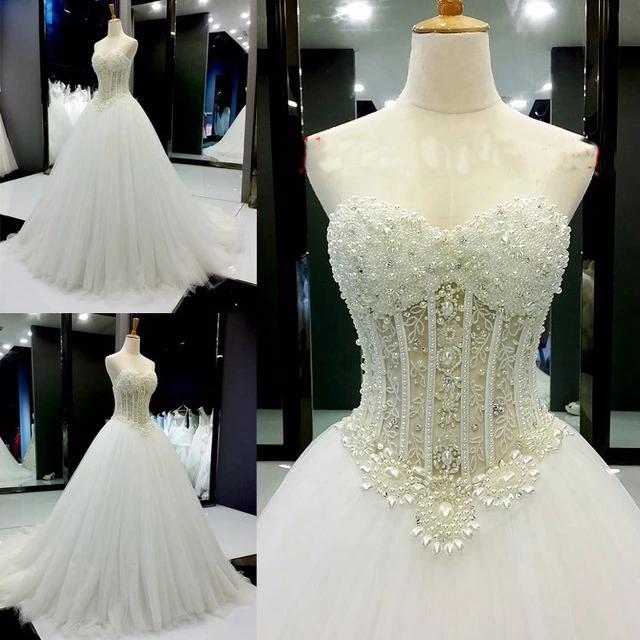 Luxury Sweetheart A-Line Tulle Beautiful Wedding Dresses Sweep Train Pearls Beaded Wedding Dresses Lace Up Back voiles de mariage