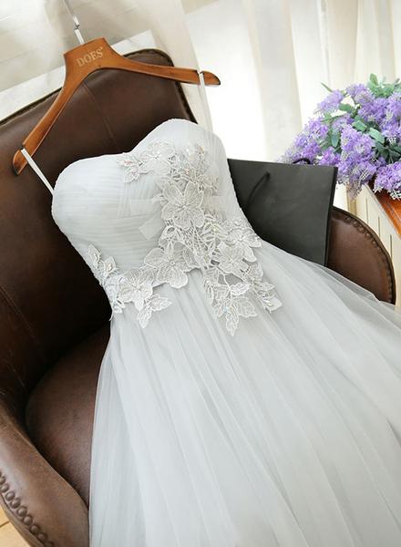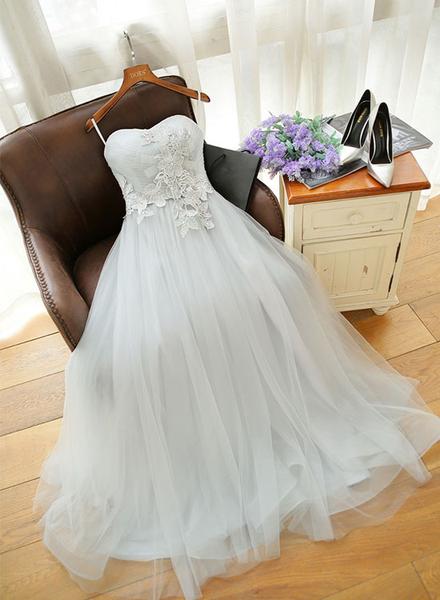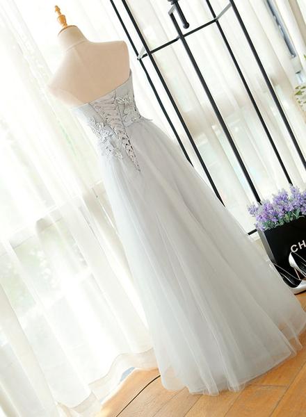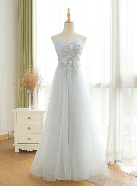 Elegant Sweetheart A-Line Silver Prom Dresses 3D Lace Appliques Floor Length Junior Prom Dresses Lace Up Back Cheap Formal Dresses