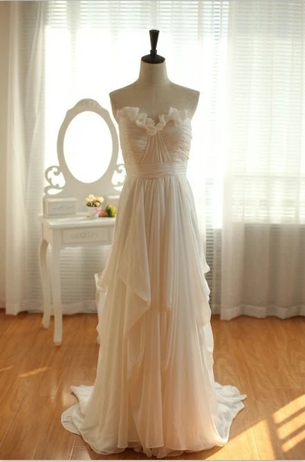 Elegant Hi-Lo Tiered Layered Chiffon Wedding Dress for Beach Wedding A-Line Sweep Train Couture Wedding Gowns Zipper Up Back Bridal Gowns