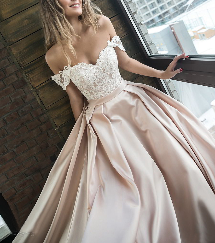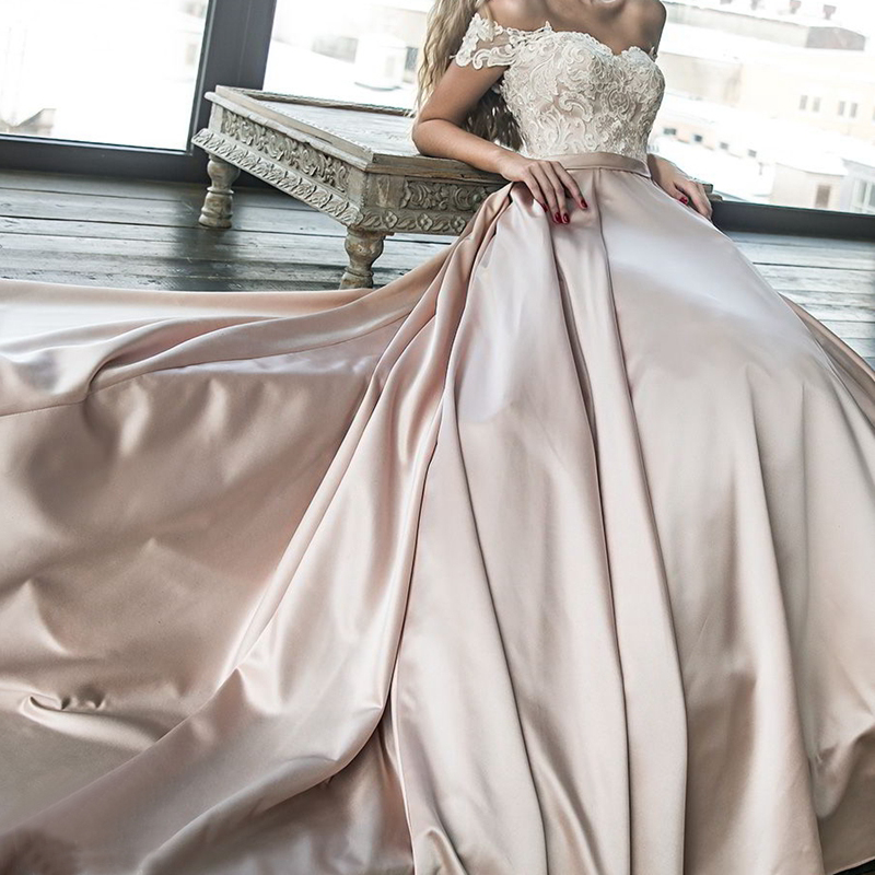 Sexy Off the Shoulder Satin Wedding Dresses Chic Lace Appliques A Line Wedding Dresses Elegant Long Vestidos De Noiva with Court Train