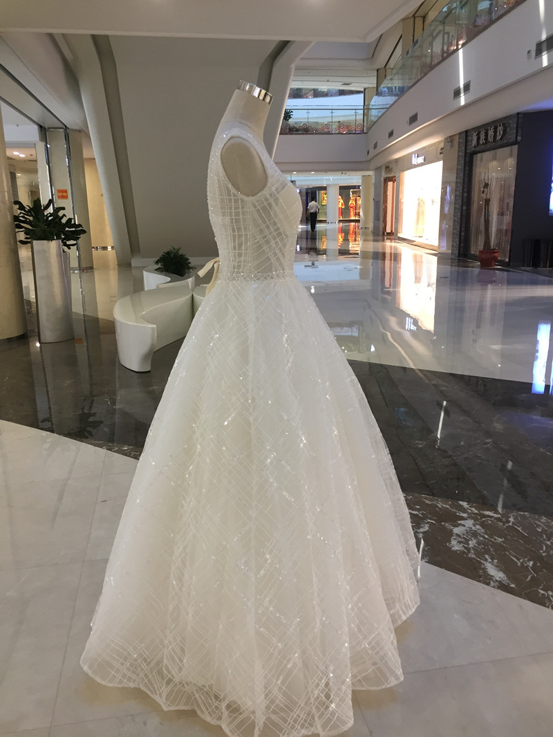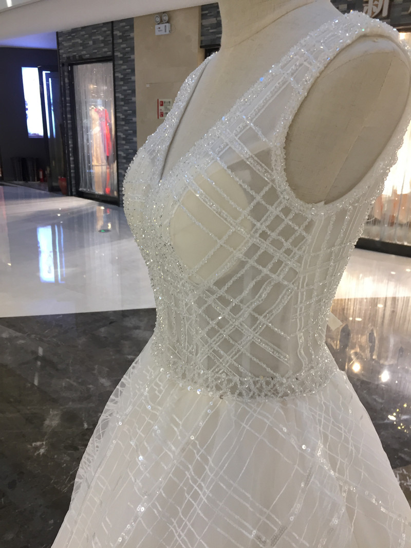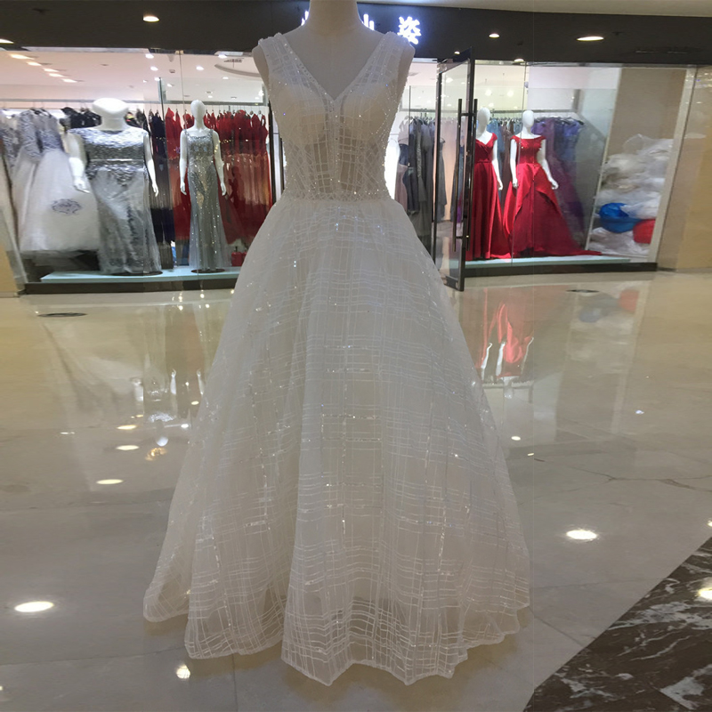 Sparkly V-Neck White Wedding Dresses on Sale Crystals Sequins Free People Wedding Dress Floor Length Sheer Top Unique Wedding Gowns