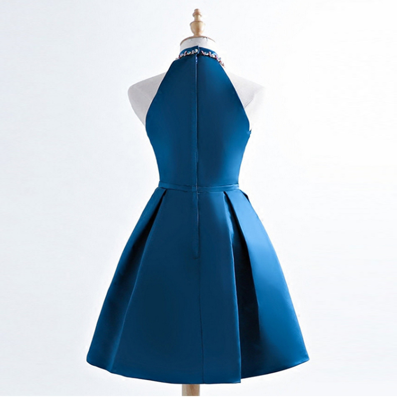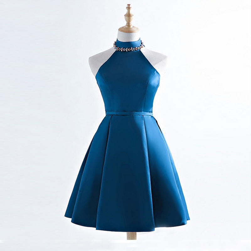 Simple High Neck A-Line Royal Blue Homecoming Dresses Bodice Rhinestones Beading Short Prom Dresses Zipper Up Back Graduation Dresses