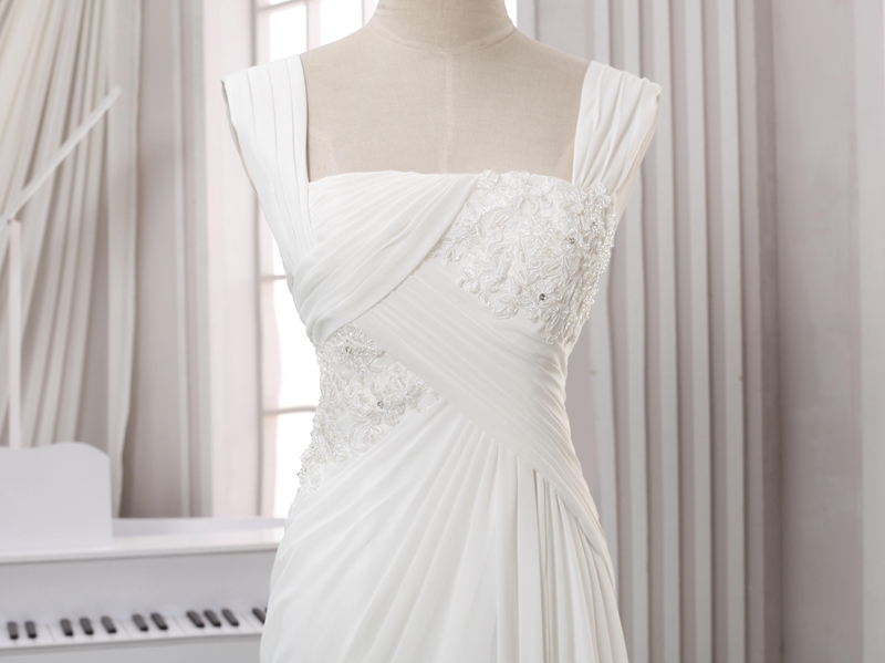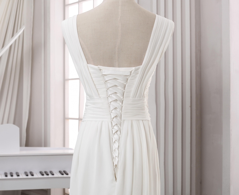 Romantic Cheap Wedding Gowns Spaghetti Straps White Chiffon Wedding Dress Lace Appliques Crystals Beading Beach Style Wedding Dresses