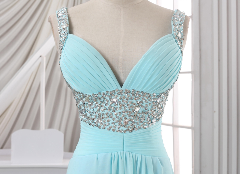 Elegant Dresses for Wedding Party Spaghetti Straps Baby Blue Chiffon Mother of The Bride Dresses with Beading Beach Wedding Guest Dresses