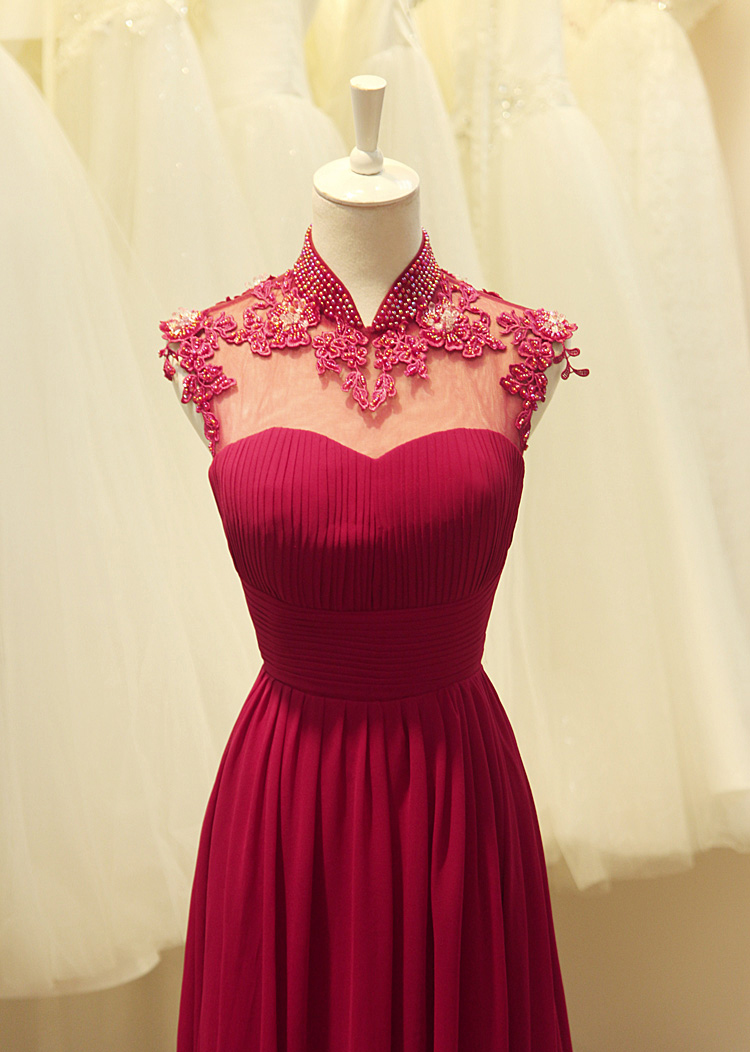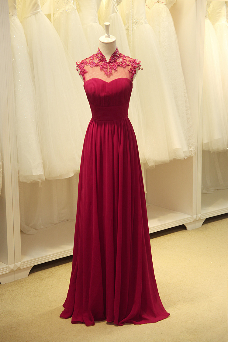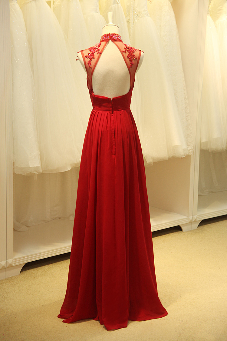 High Collar Chiffon Dress for Mother of The Bride Appliques Beading Womens Special Occasion Dresses Open Back Wedding Guest Dresses