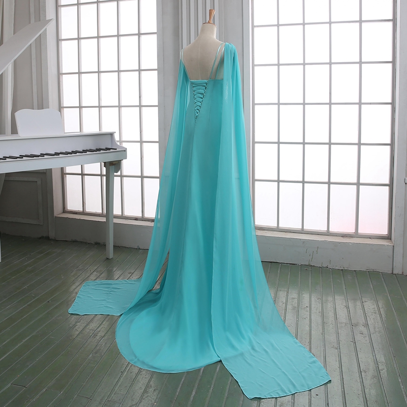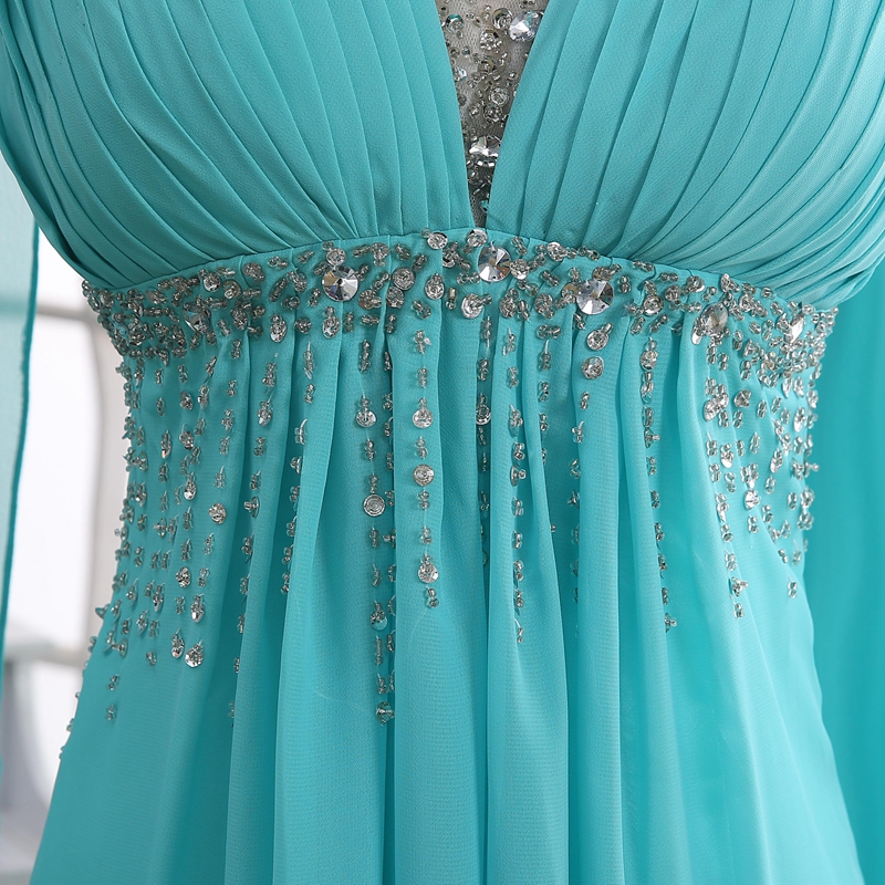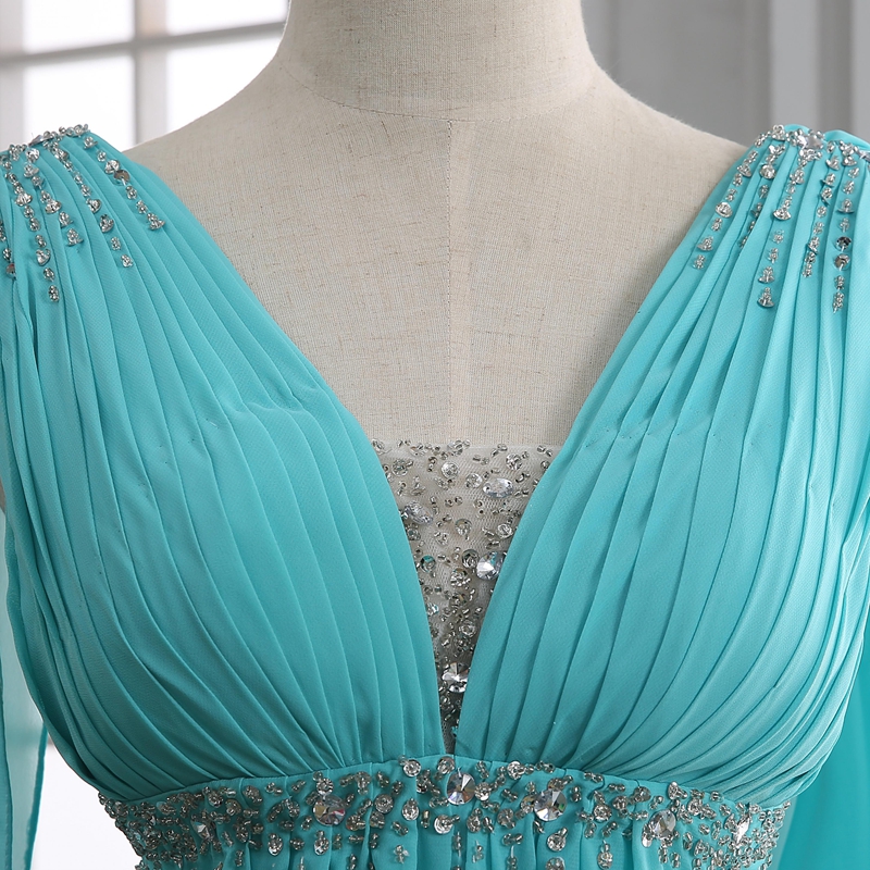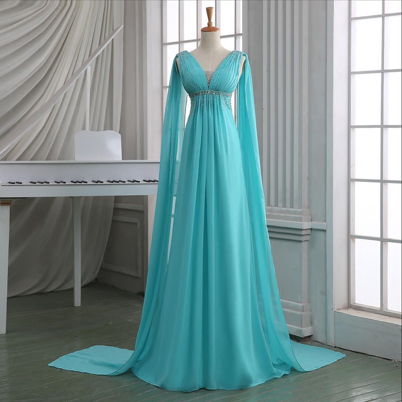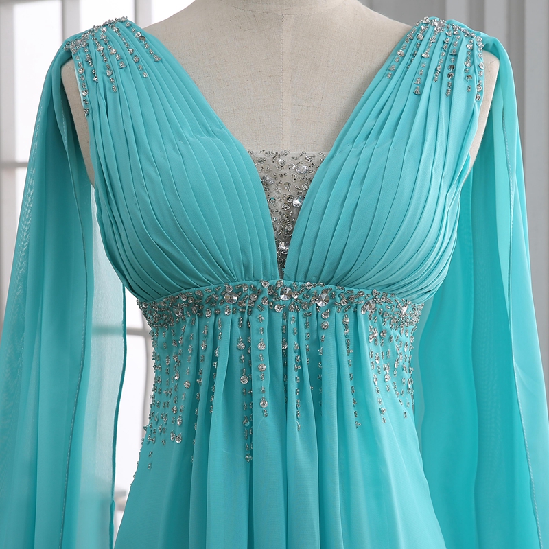 Elegant V-Neck Chiffon Blue Mother of The Bride Dresses with Watteau Train Wedding Guest Dresses with Beading Evening Dresses for Women
