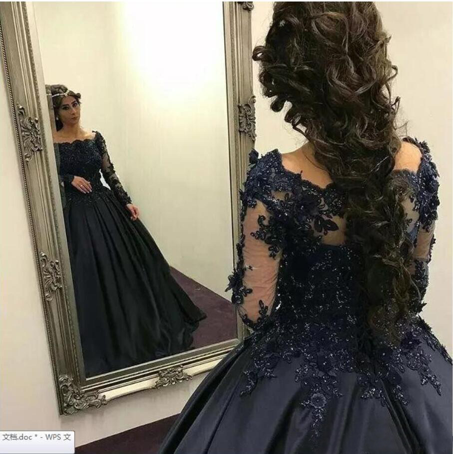 Gothic Off-shoulder Black Wedding Dresses with Sleeves Lace Appliques Ball Gown Wedding Dresses with Beading Lace Up Back Bridal Dresses