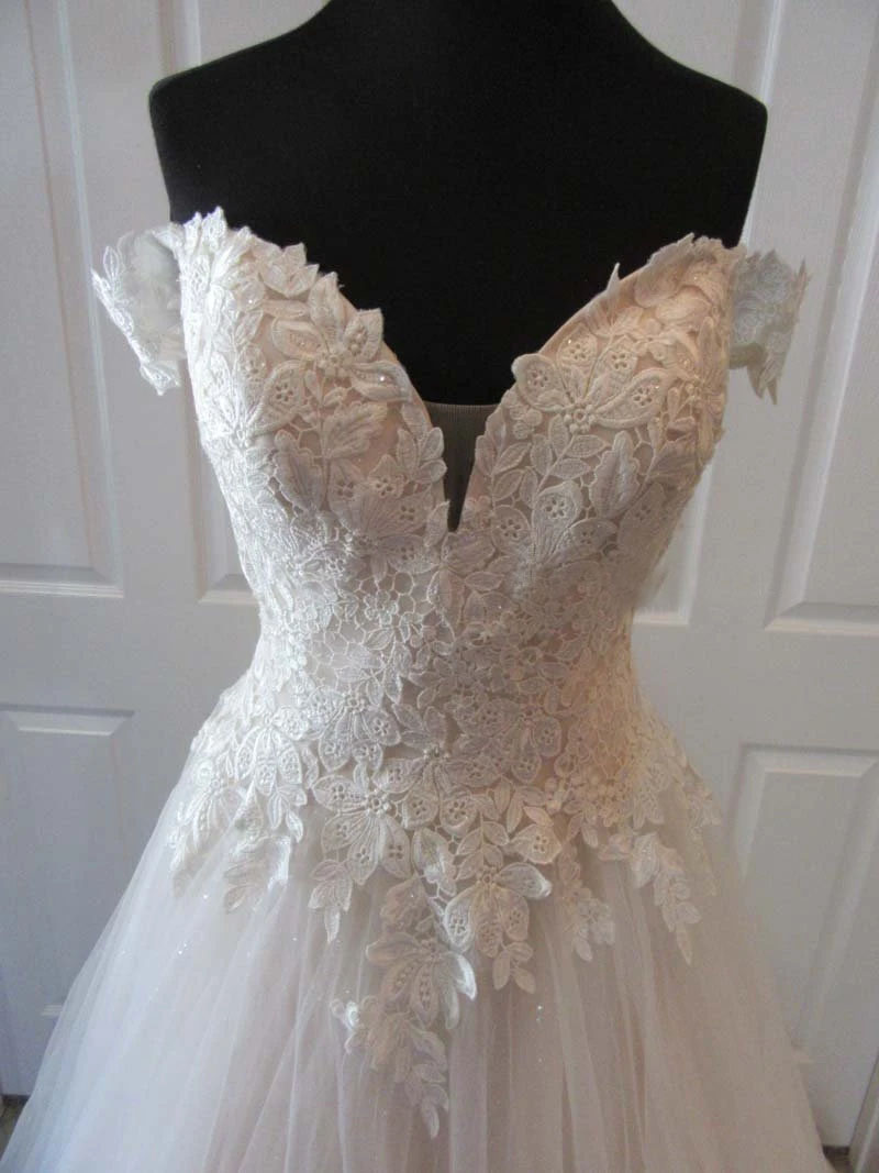 Romantic Off-shoulder A Line Wedding Dresses with Sleeves Delicate Lace Appliques Wedding Gowns with Chapel Train Vestidos De Novia