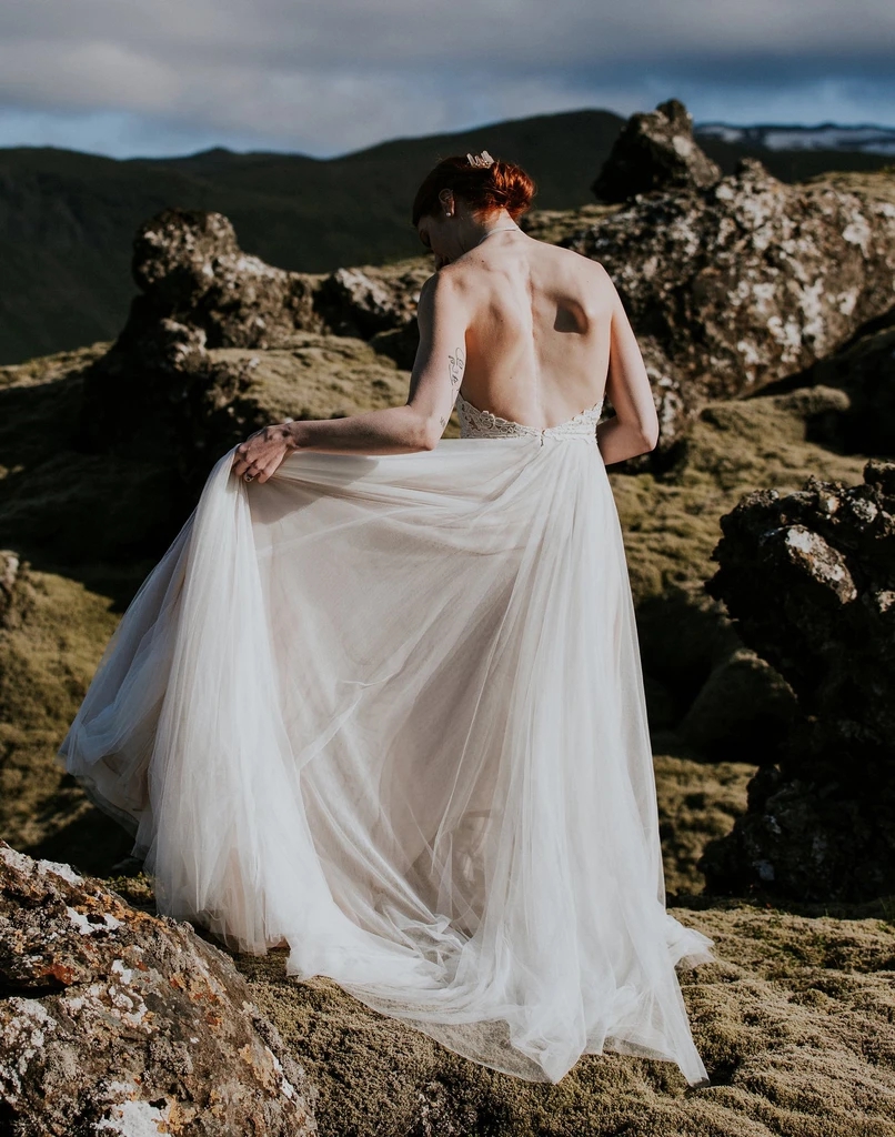 Romantic Halter Tulle Boho Wedding Dress Lace Appliques A-Line Beach Wedding Dresses Backless with Sweep Train Bridal Gowns robe de soiree