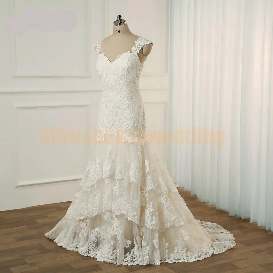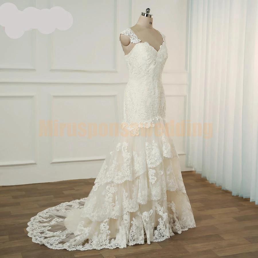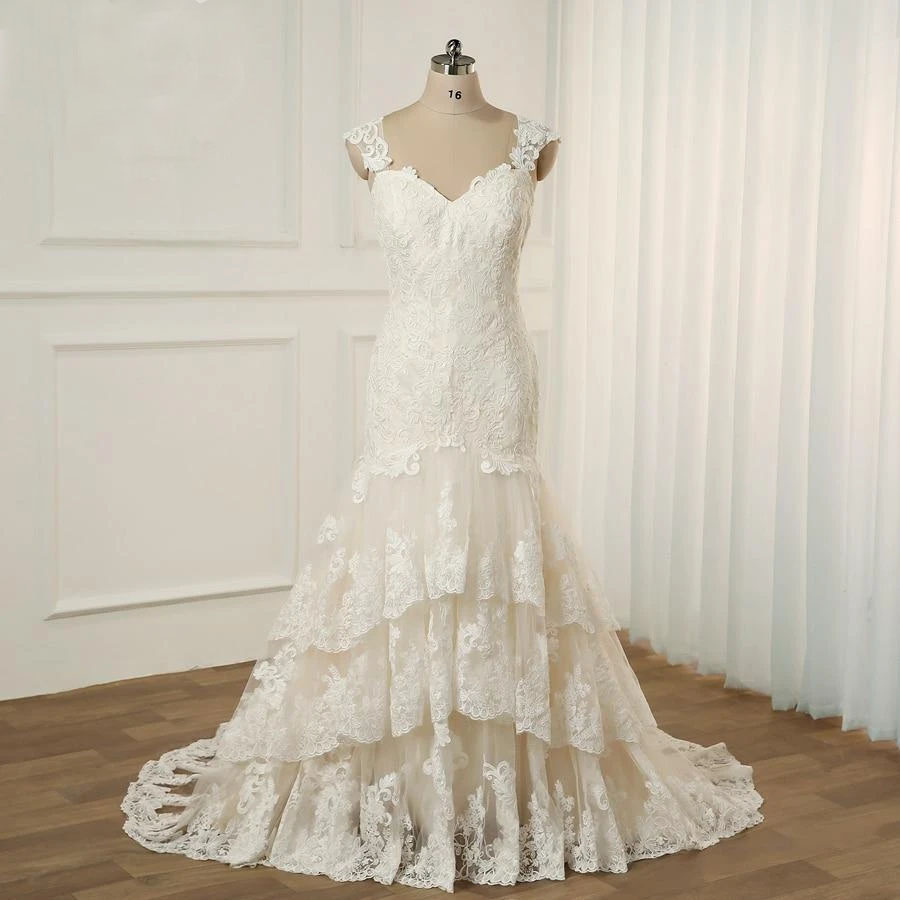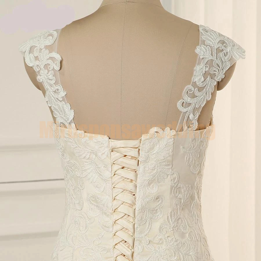 Gorgeous Spaghetti Straps A-Line Ivory Wedding Dresses with Court Train Appliques Lace Wedding Dresses Cheap Bridal Gowns vestidos de noiva