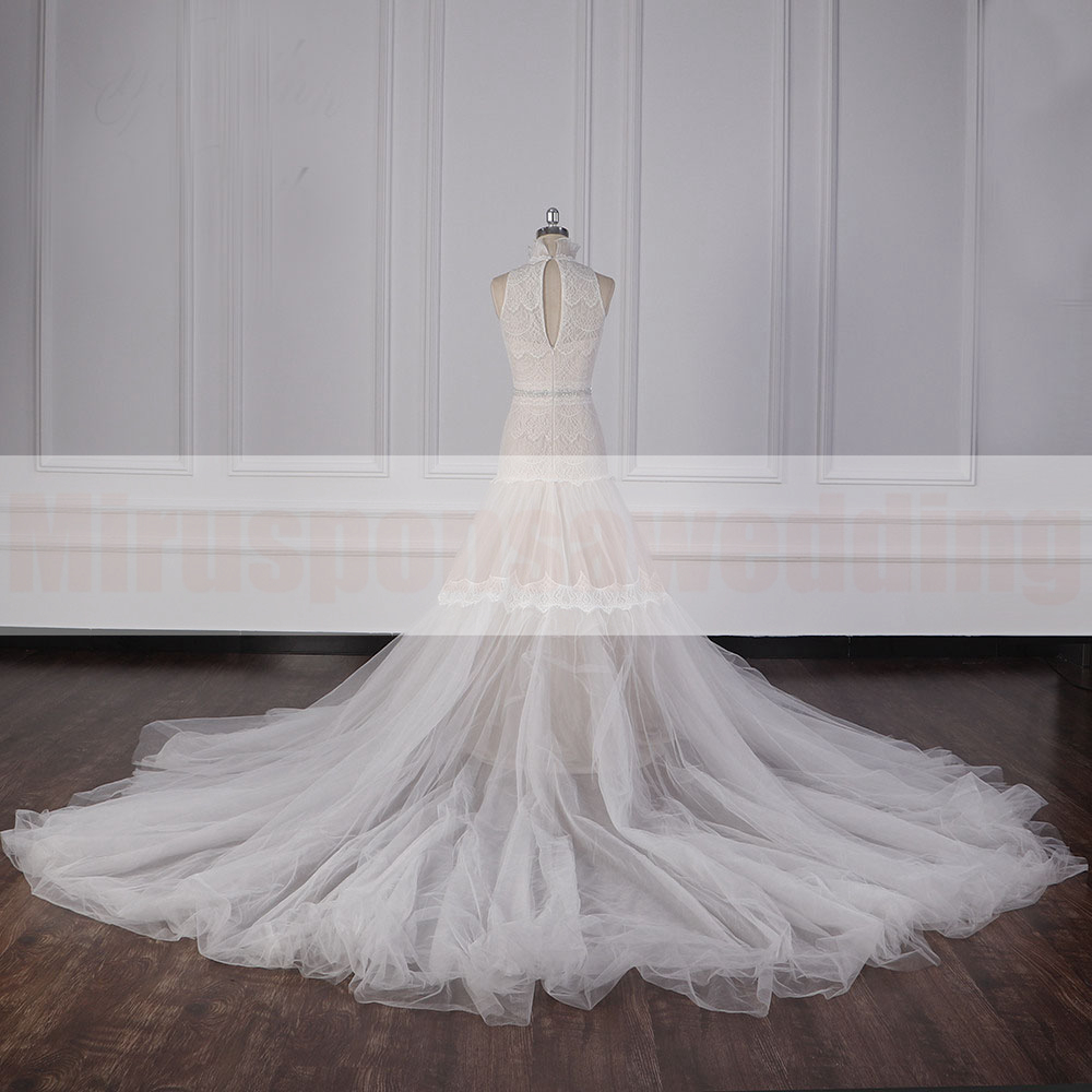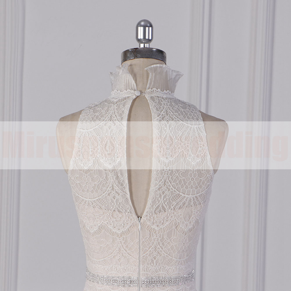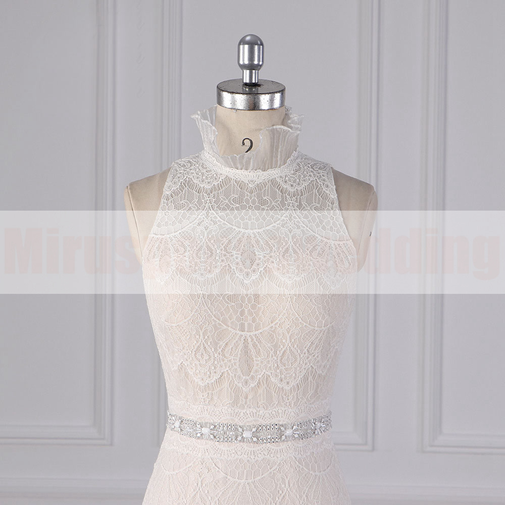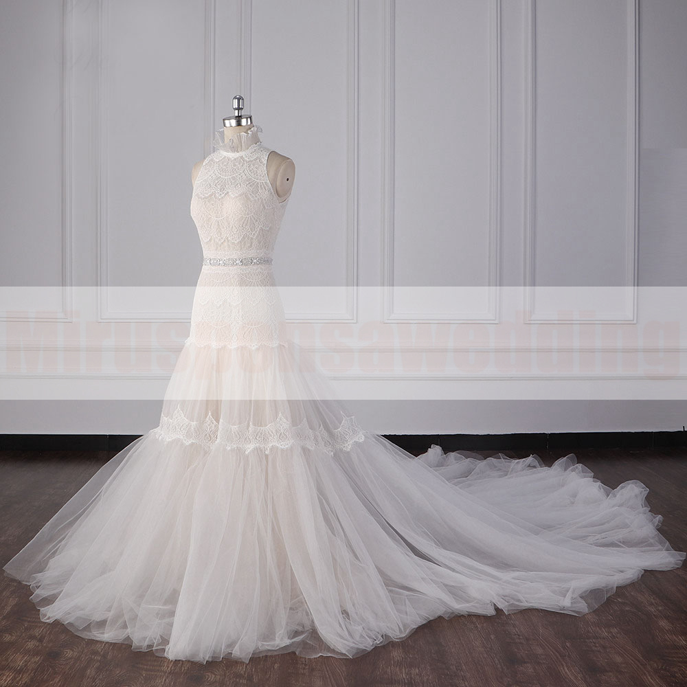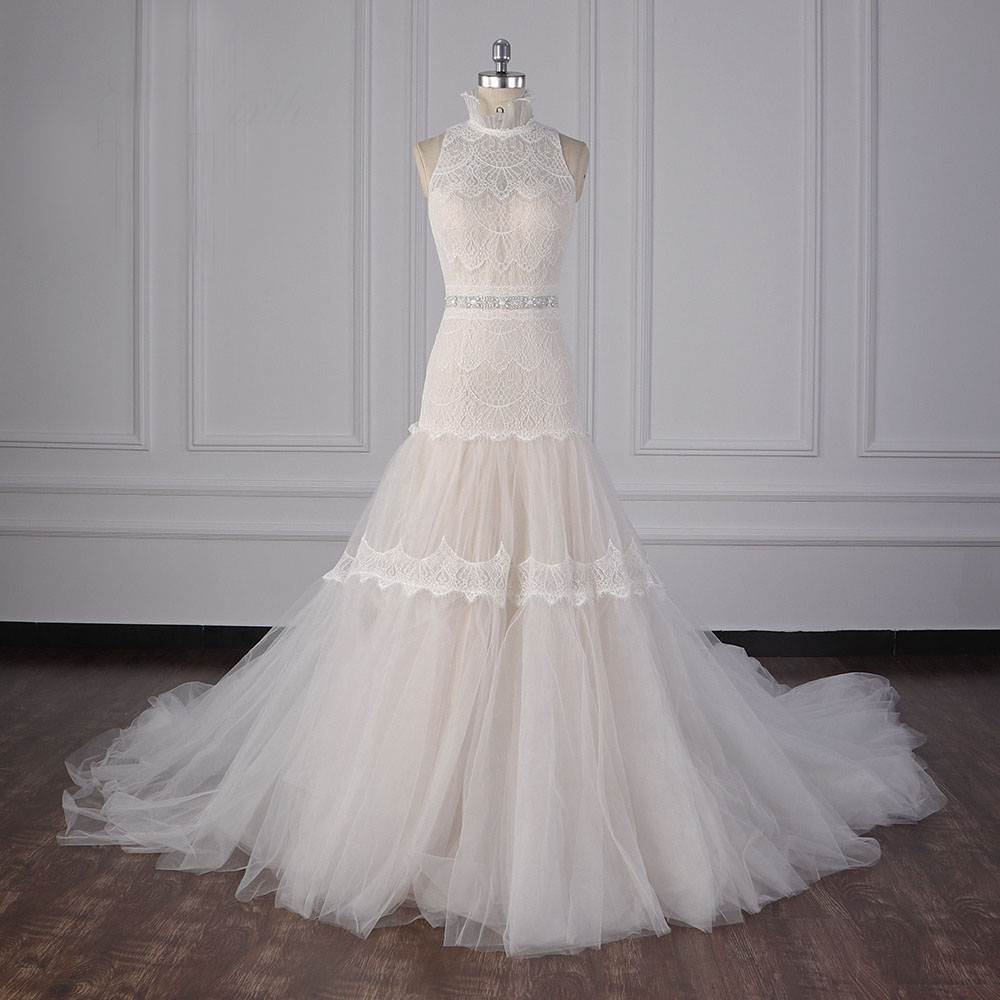 Outstanding High Collar Drop Waist Modern Wedding Dresses Beaded Waist Bohemian Wedding Dress Appliques Wedding Gowns vestidos de noche