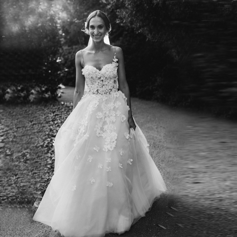 White Boho Floral Wedding Dresses Spaghetti A-Line with 3D Flowers vestido de festa de casamento Pearls Beading Wedding Gown