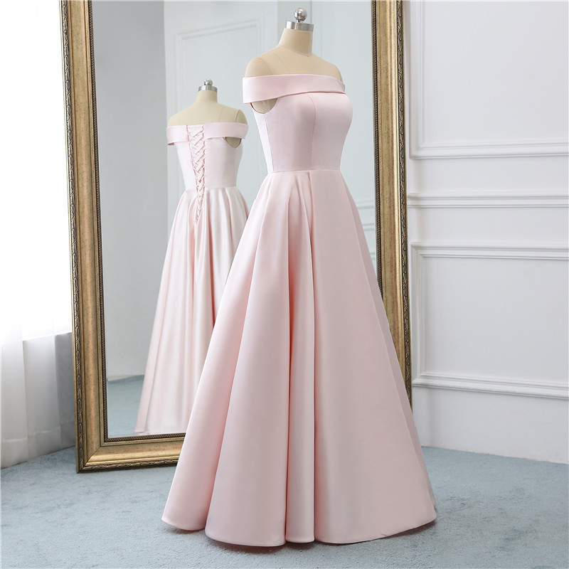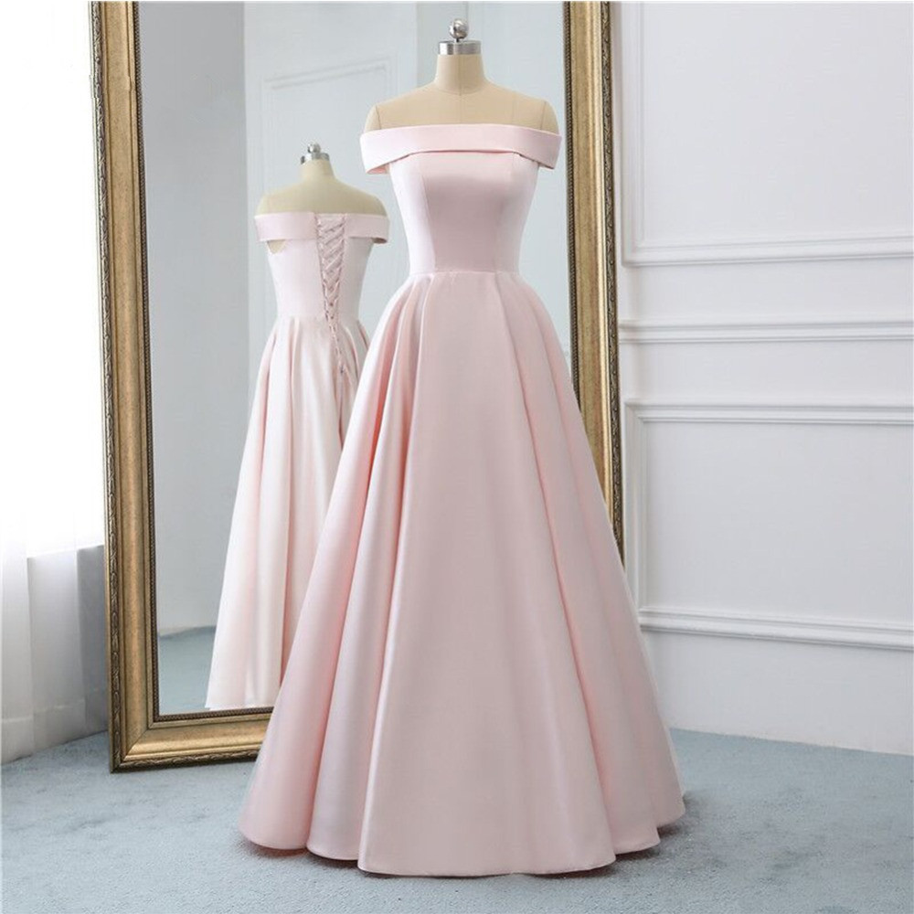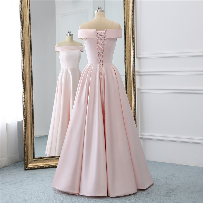 Baby Pink Long Prom Dresses Off Shoulder Vintage Prom Gowns With Satin Pockets Formal Evening Dresses Corset Back Party Gown