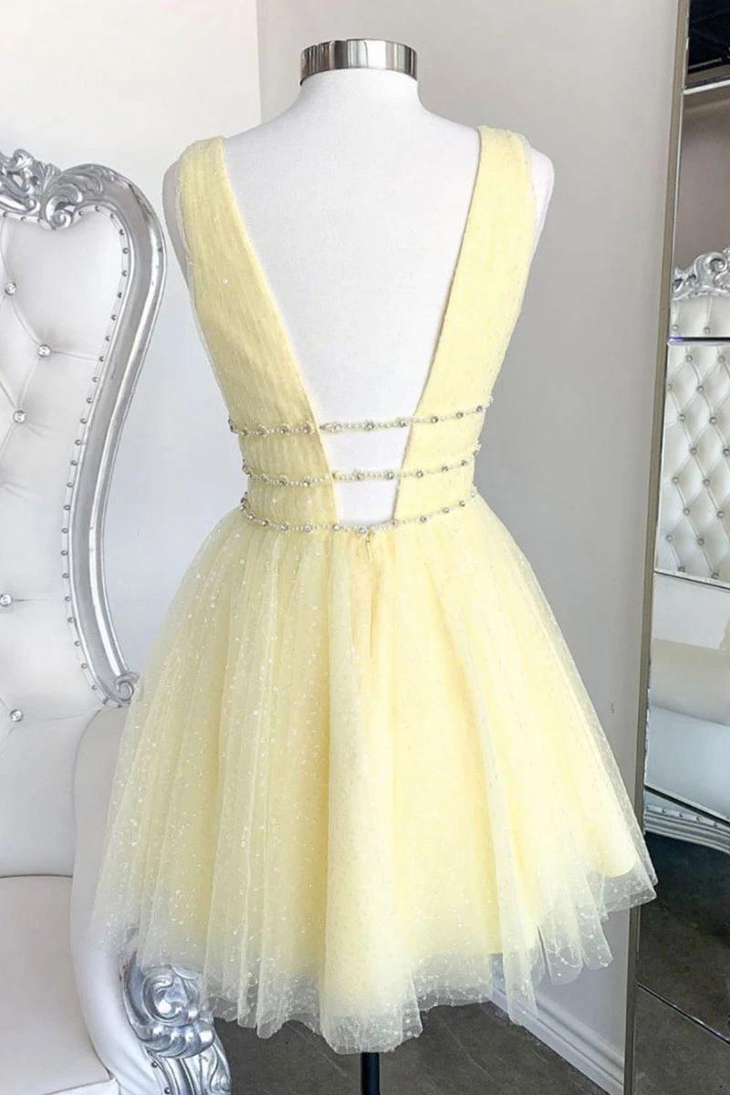 Yellow Prom Dresses Short, Sexy Homecoming Dresses, Sparkly Prom Dress, Wedding Party Dresses