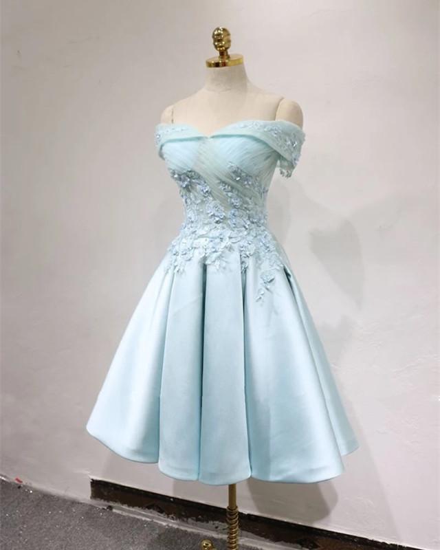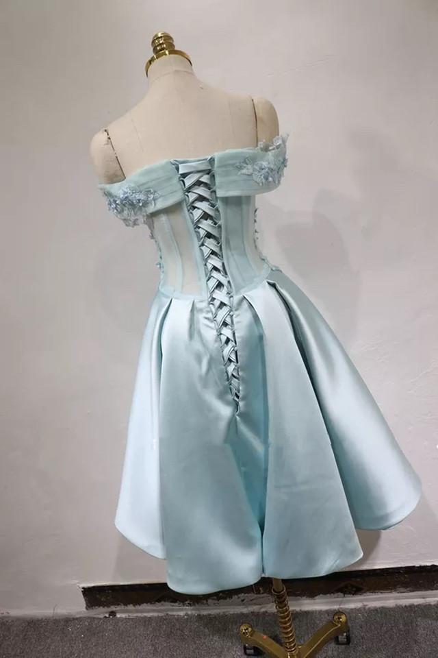 Short Off-shoulder Prom Prom Homecoming Dresses Lace Appliques with 3D Flowers