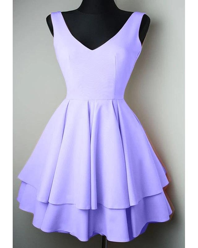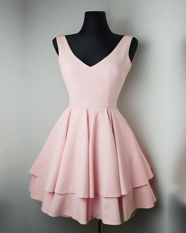 Pretty Short Satin V Neck Ruffle Homecoming Dresses