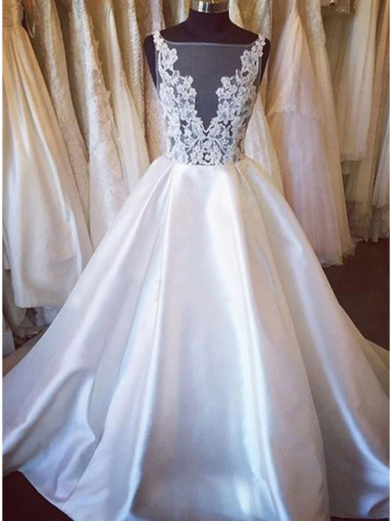 Illusion Neckline Ball Gown Beautiful Wedding Dresses Lace Appliques Backless Bridal Gowns