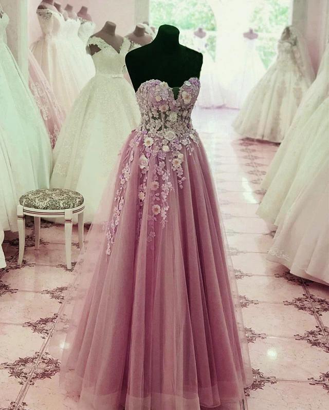 Tulle Sweetheart Prom Long Dresses With 3D Flowers,Wedding Reception Dress