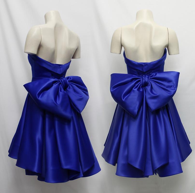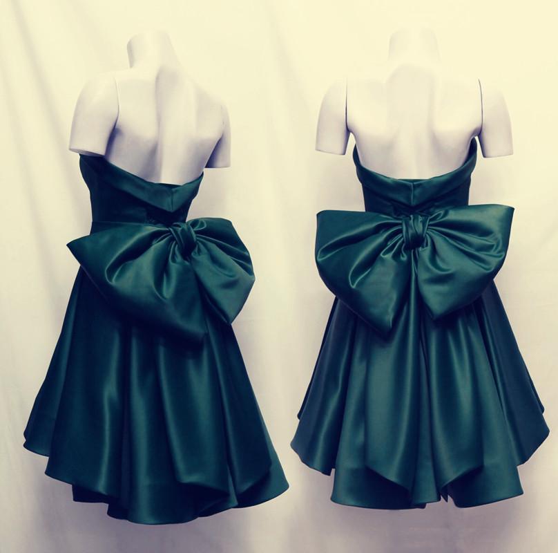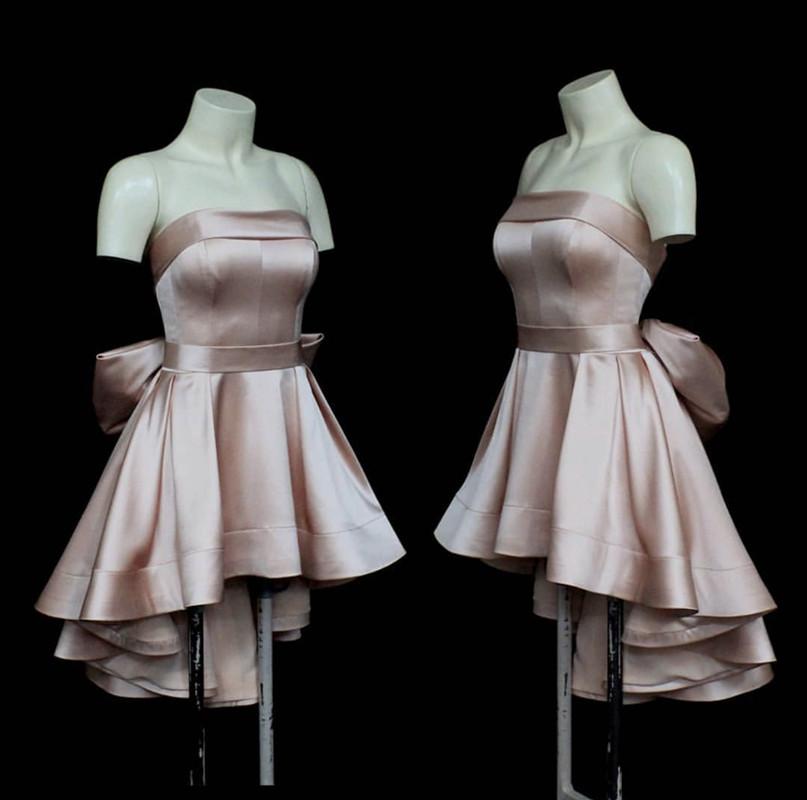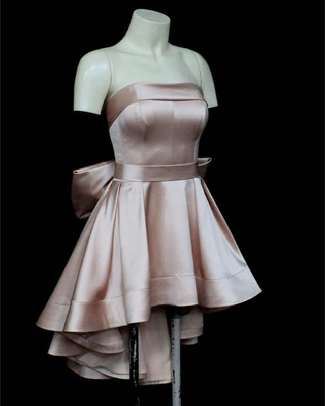 Satin High Low Hem Prom Dresses Short with Bow Back Short Homecoming Dresses