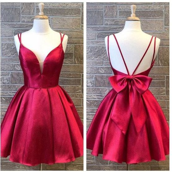Satin Multi Straps Short Homecoming Dress with Bow Back Prom Dress