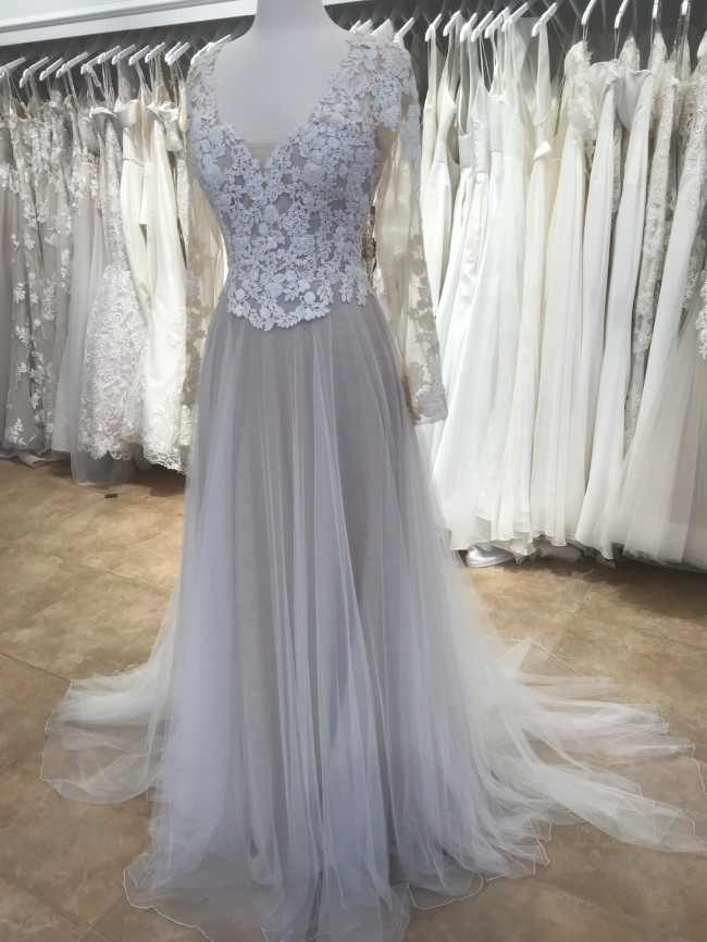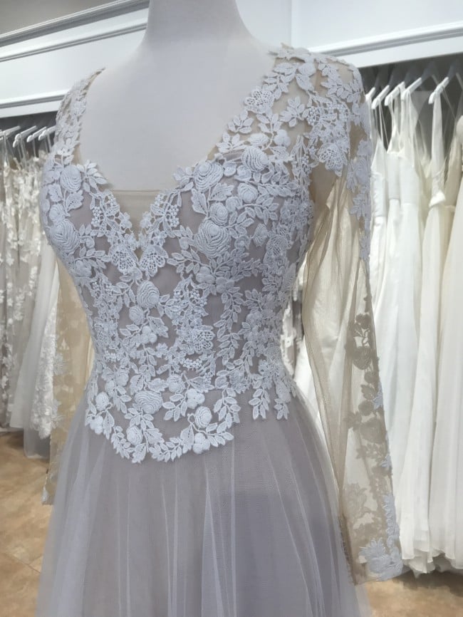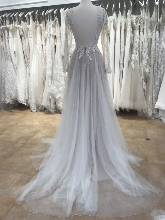 Boho Tulle Long Sleeved Wedding Dresses with Lace Appliques,Backless Wedding Gowns, Bohemian Wedding Dress