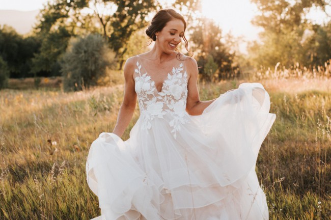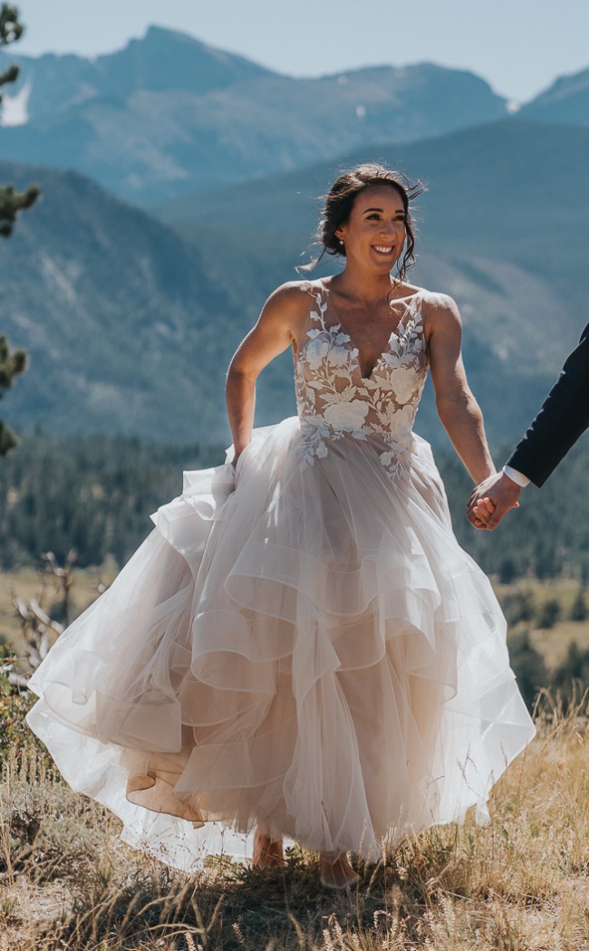Floral Petite Wedding Dresses Lace Appliques with Ruffled Skirt