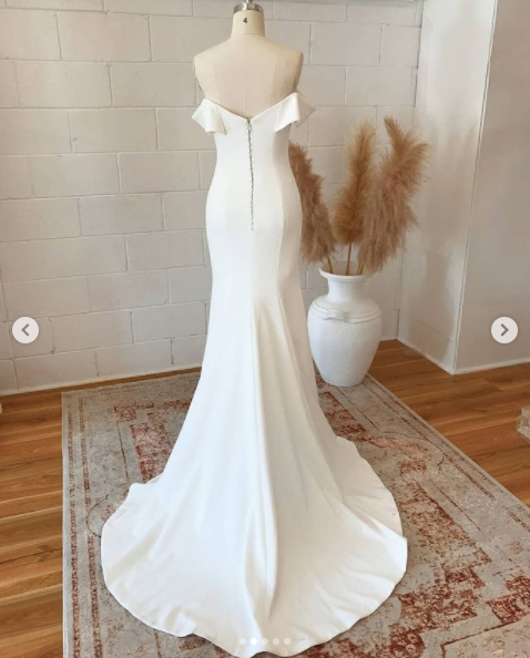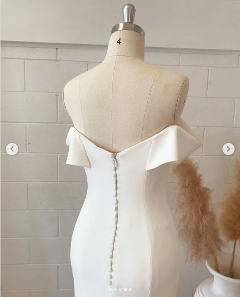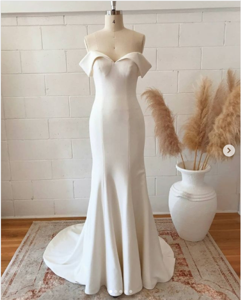 White Satin Off-shoulder Mermaid Wedding Dresses with Zipper Up Back
