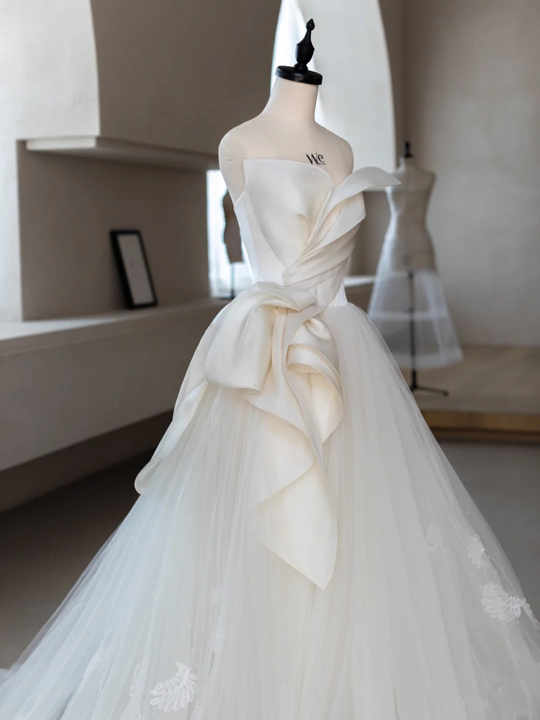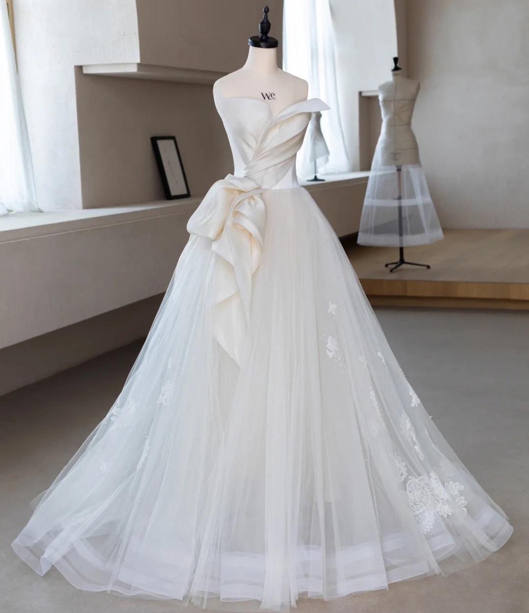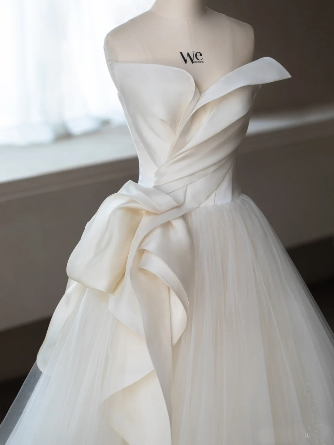 White A-Line Wedding Dresses, Satin Tulle Bridal Gowns, Modest Wedding Gowns, Unique Design Wedding Reception Dress