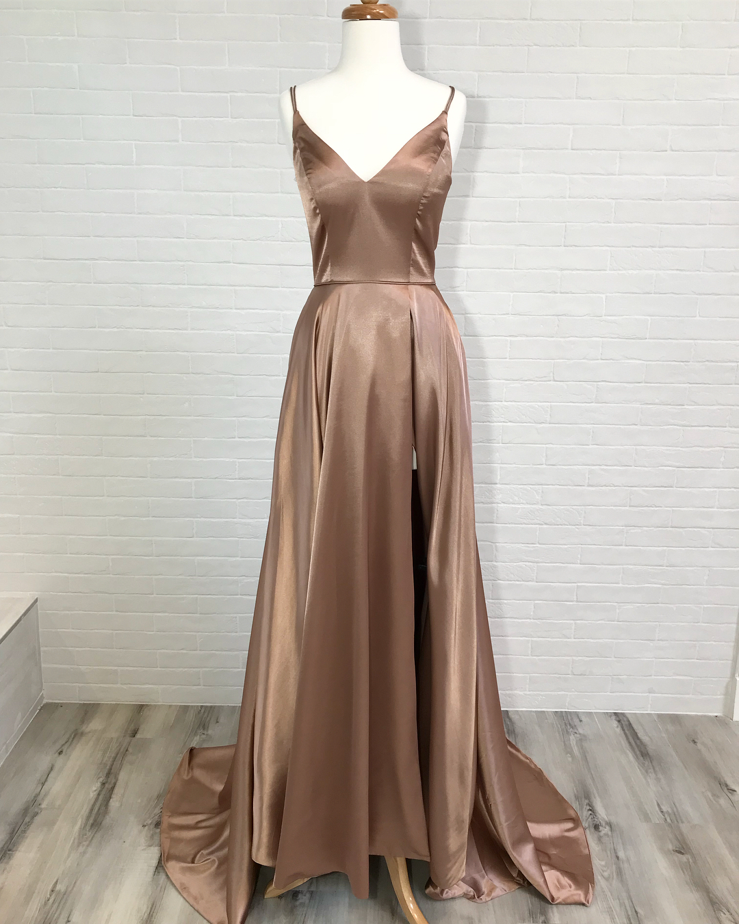 Satin like Silk Spaghetti Prom Dresses, Long Homecoming Dresses, Graduation Dresses, Wedding Guest Dresses