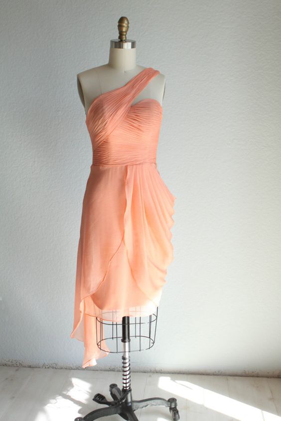 Orange Bridesmaid Dresses, Chiffon Bridesmaid Dresses, One-shoulder Homecoming Dresses, Wedding Guest Dresses