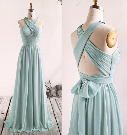 Halter A-Line Chiffon Blue Bridesmaid Dresses