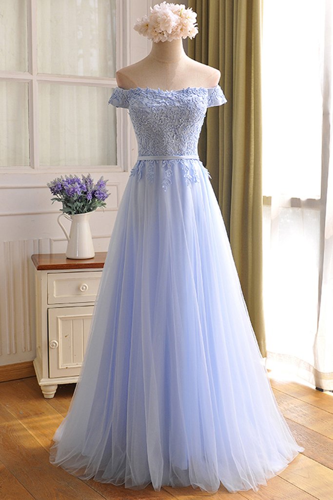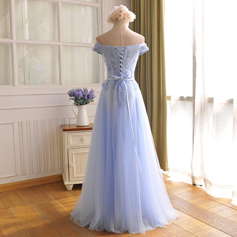 Charming Light Blue Tulle Wedding Party Dress, Long Bridesmaid Dress, Maid of Honor Dresses