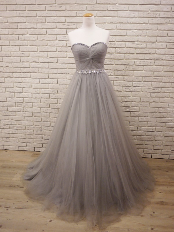Tulle Grey Charming Sweetheart Beaded Floor Length Gowns, Grey Party Dresses, Long Evening Dresses