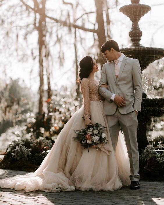 Light Champagne Wedding Dresses, Long Sleeve Bridal Gowns