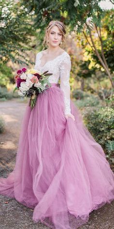White and Rose Pink Wedding Dresses, Colored Bridal Gowns