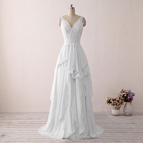 White Chiffon Wedding Dresses with Ruffled Skirt